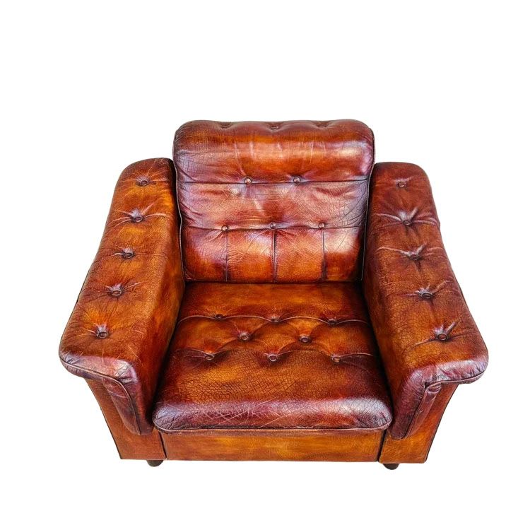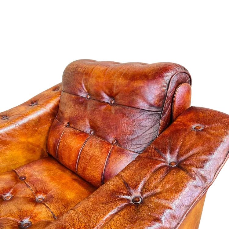 The fantastic hand-dyed tan colour has developed a beautiful patina, giving the chair a unique and rustic appeal that adds character to any space. The deep seater ensures comfort whether you're lounging or reading, providing ample support and relaxation.