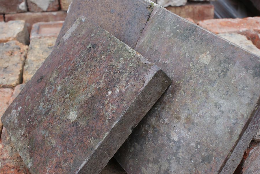 Reclaimed 9 inch x 9 inch dark quarry tiles