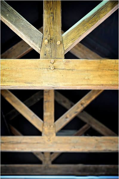 Beautiful reclaimed antique pine king post truss with a sanded and waxed finish