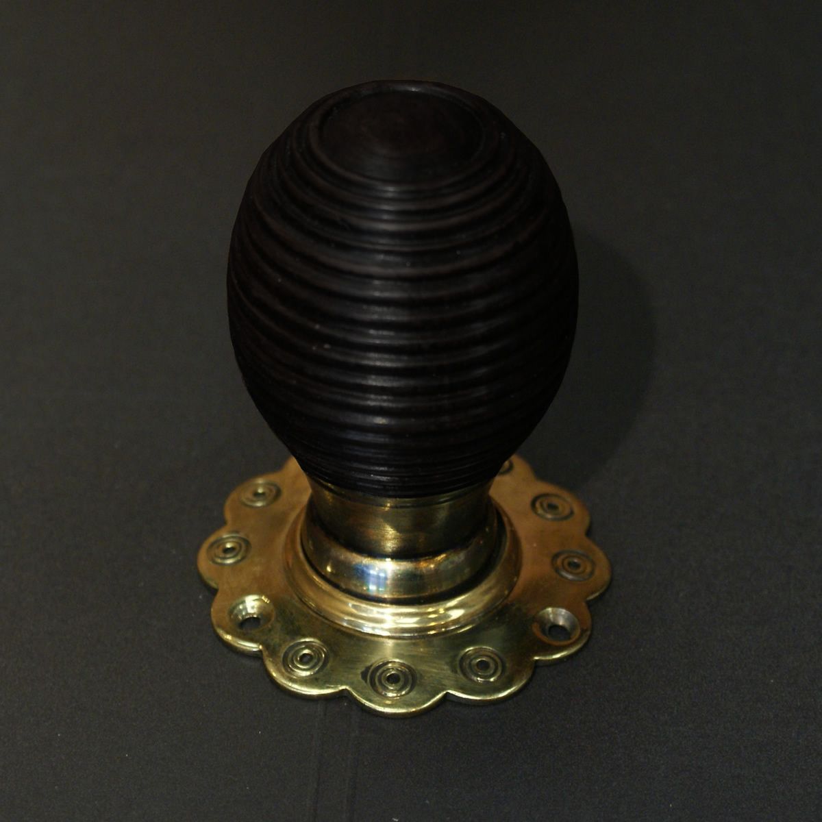 - Ebonized Beech Beehive Door Handles / Door Knobs with Brass Petal Back Plate