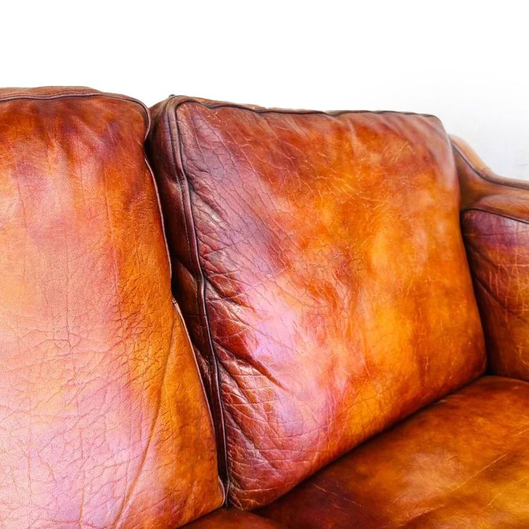 Compact vintage 2 seater sofa by renowned Scandinavian designer Tham Kvalitel. In the finest quality leather with feather filled cushions