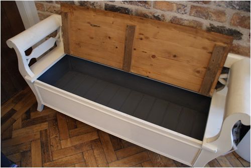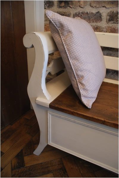 Exquisite French Style Settle (Incorporating Storage Below) with Serpentine Arms and Tasteful Detailing,Seat in Vintage Timber. Lightly Distressed and Finished in Farrow & Ball Colours