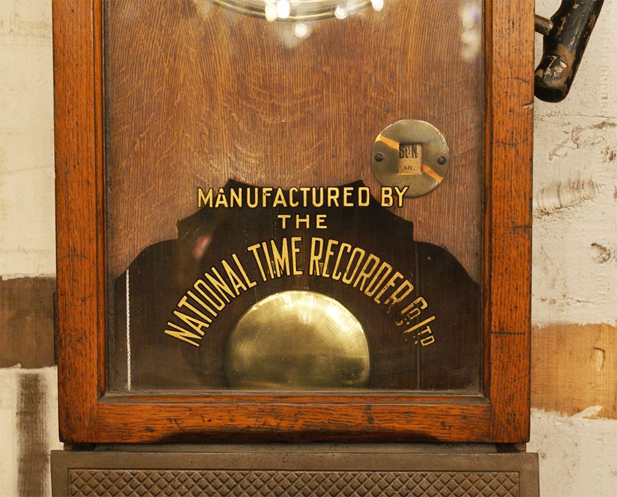 Industrial clocking in clock in Oak. Manufactured by the National time recorder Co Ltd.