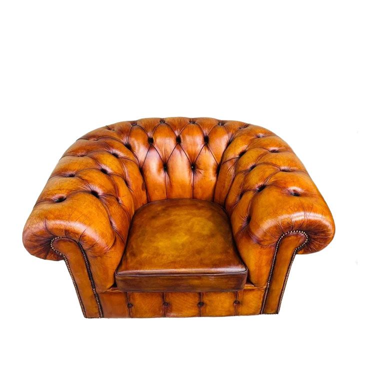 Crafted with quality and durability in mind, these armchairs combine classic Chesterfield style with comfortable seating. The leather’s natural finish and subtle variations enhance their vintage charm, making them a standout addition to both traditional and contemporary spaces.