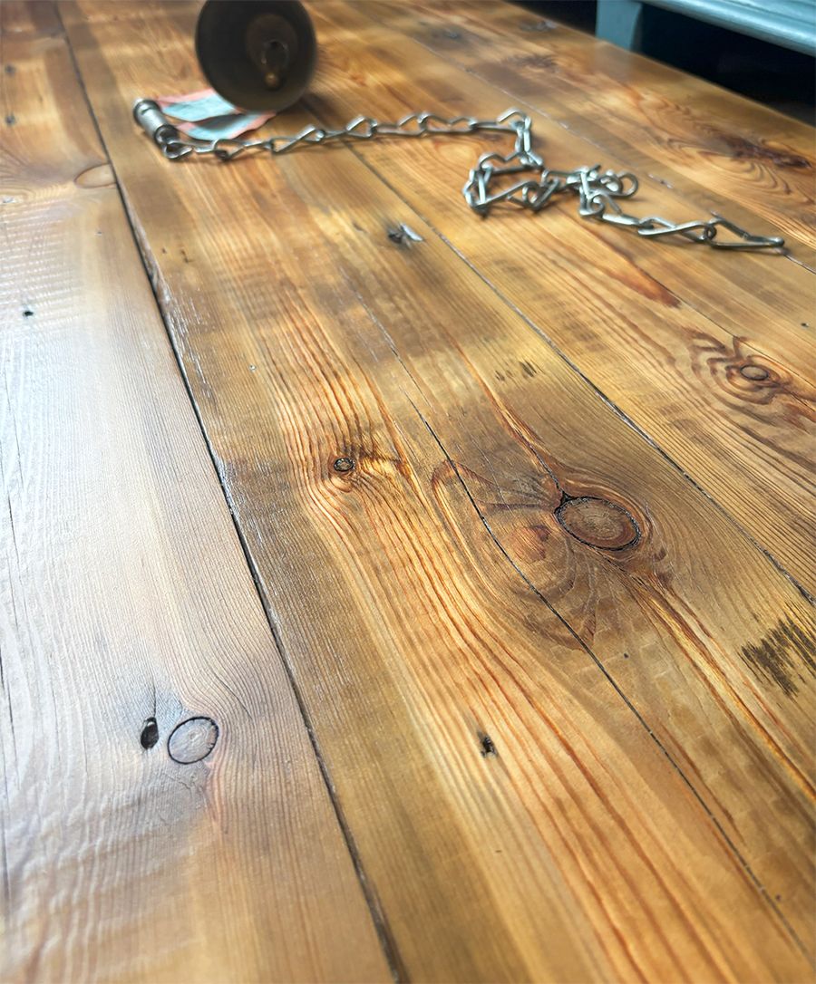 Reclaimed Pine board salvaged from Loughborough railway workshop