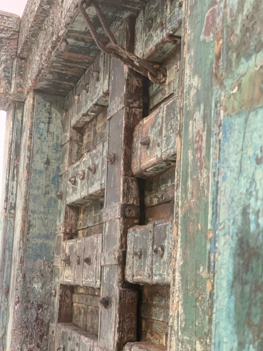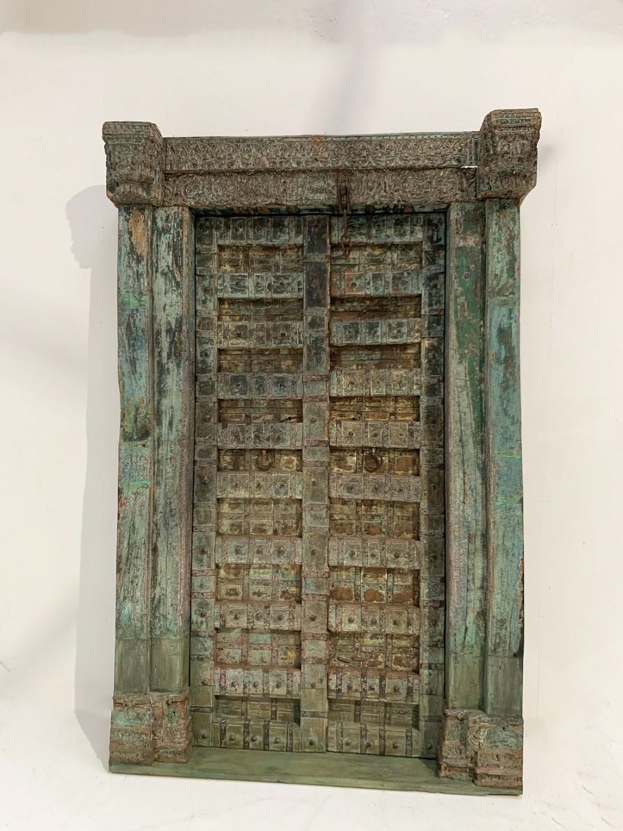 Magnificent antique Colonial door & frame ( Circa 1820) with beautiful hand carved detailing, and embellished with original brass door pulls