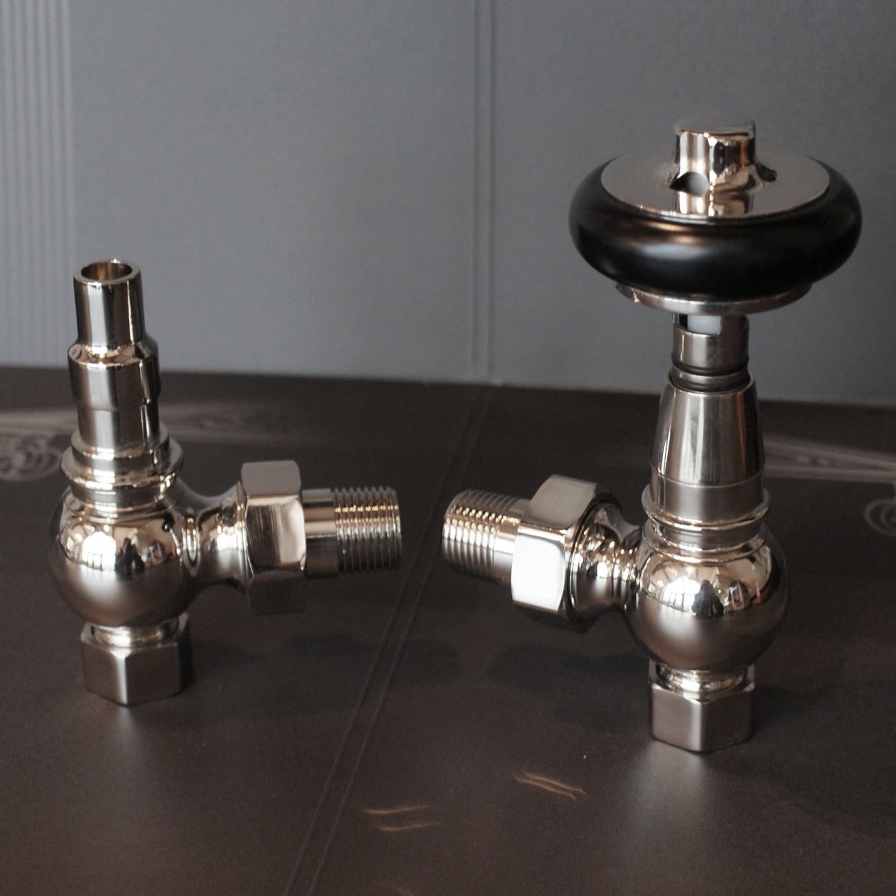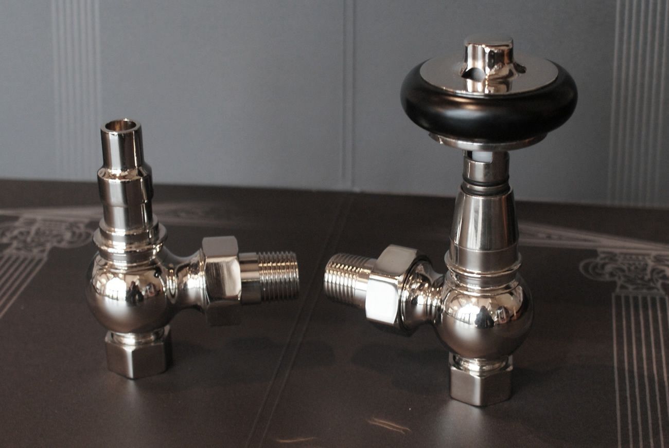 Traditional Nickel Thermostatic Radiator Valve With Wooden Wheel Head 1/2 inch fitting only