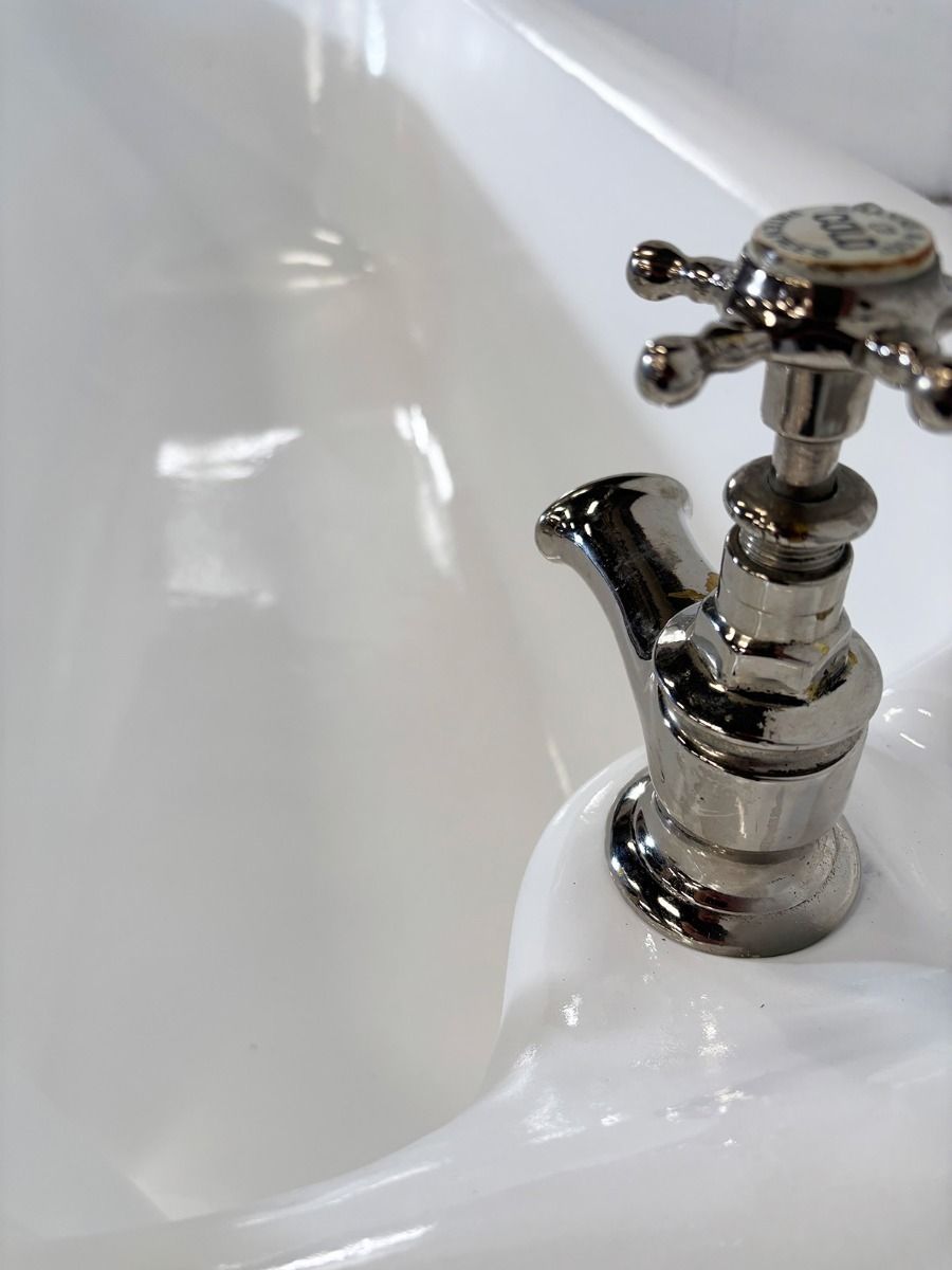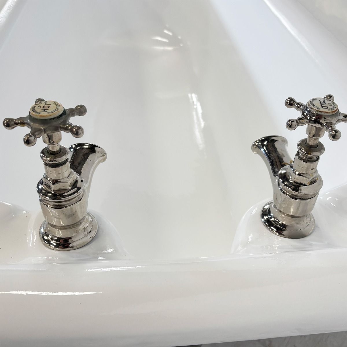 Beautiful fully restored original Victorian gentleman’s bath of generous proportions. Standing on ball and claw feet, complete with magnificent original nickel tapware (circa 1890)