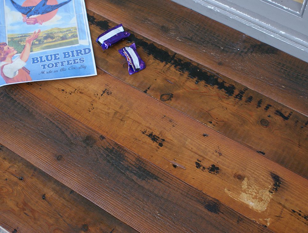 Stunning reclaimed Pine boarding salvaged from the Blue Bird Toffee factory