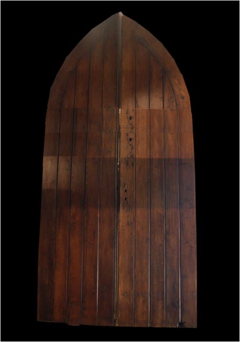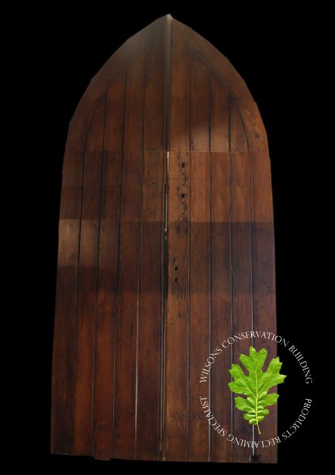 Pair of antique pine planked gothic priory doors, beautifully restored and waxed.