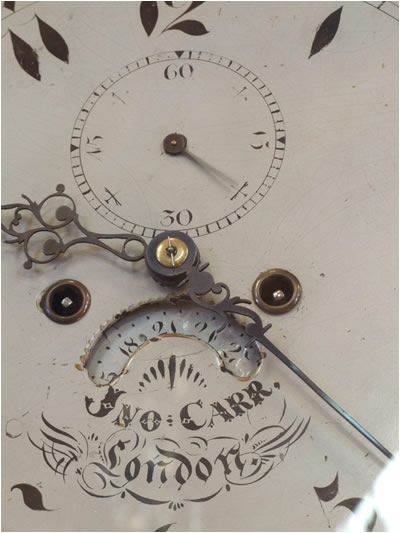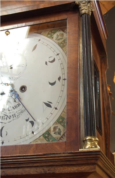 Early 19th century Grand father clock in a beautiful English Oak case inlaid with Rosewood & flame Mahogany