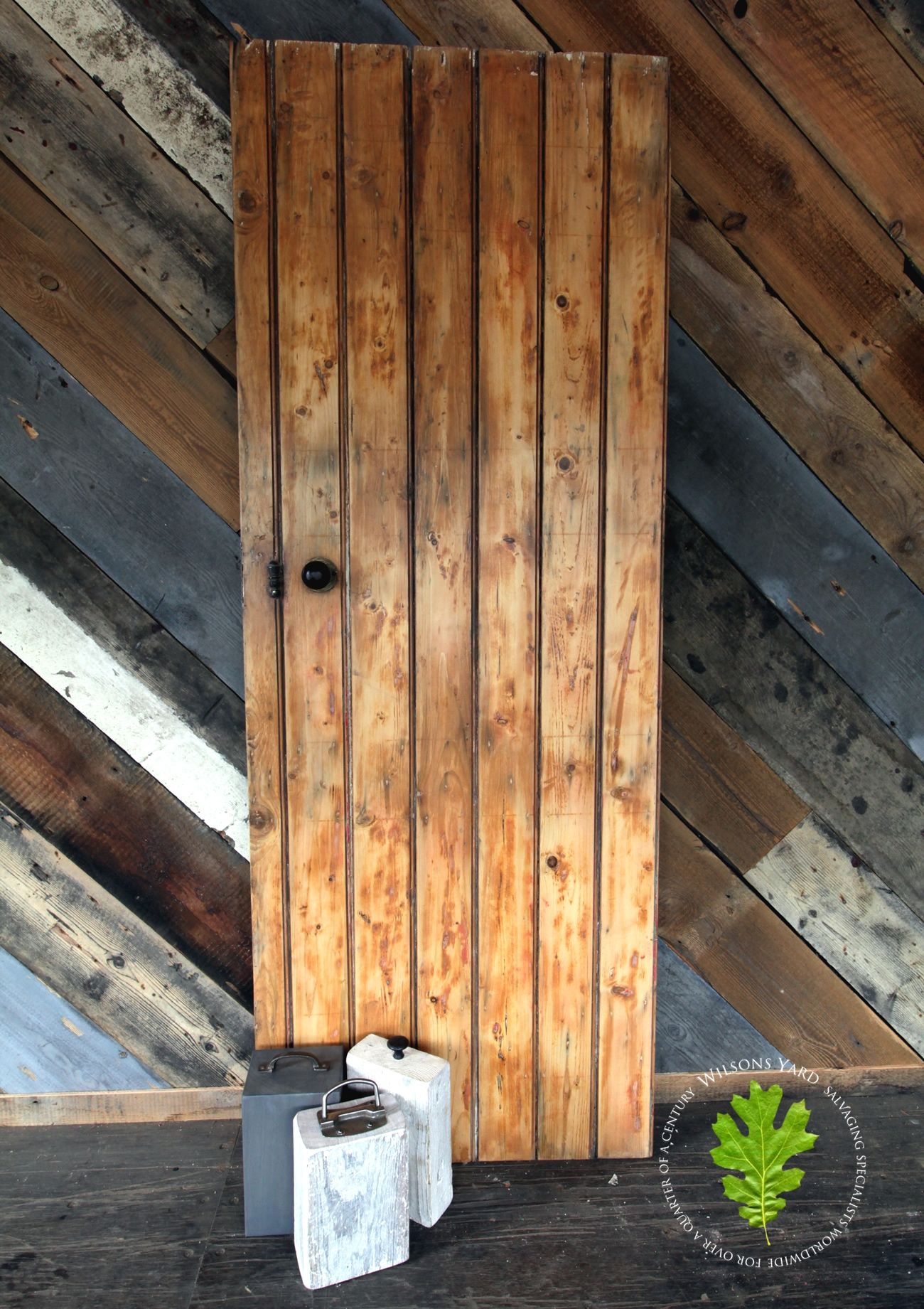 Pine sheeted door red & blue industrial look