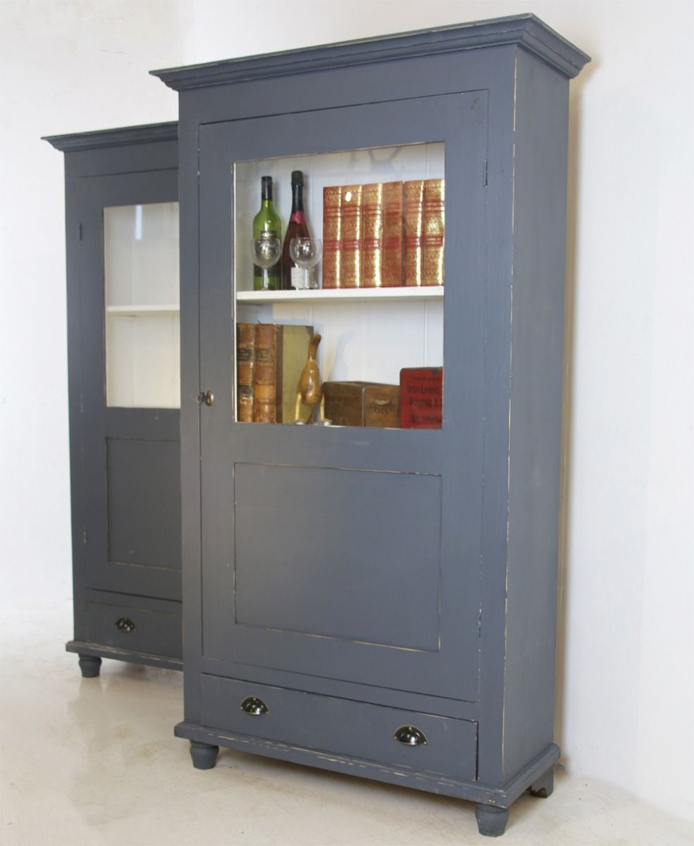 Restored vintage Swedish larder / bookcase with large semi glazed door and single drawer below.