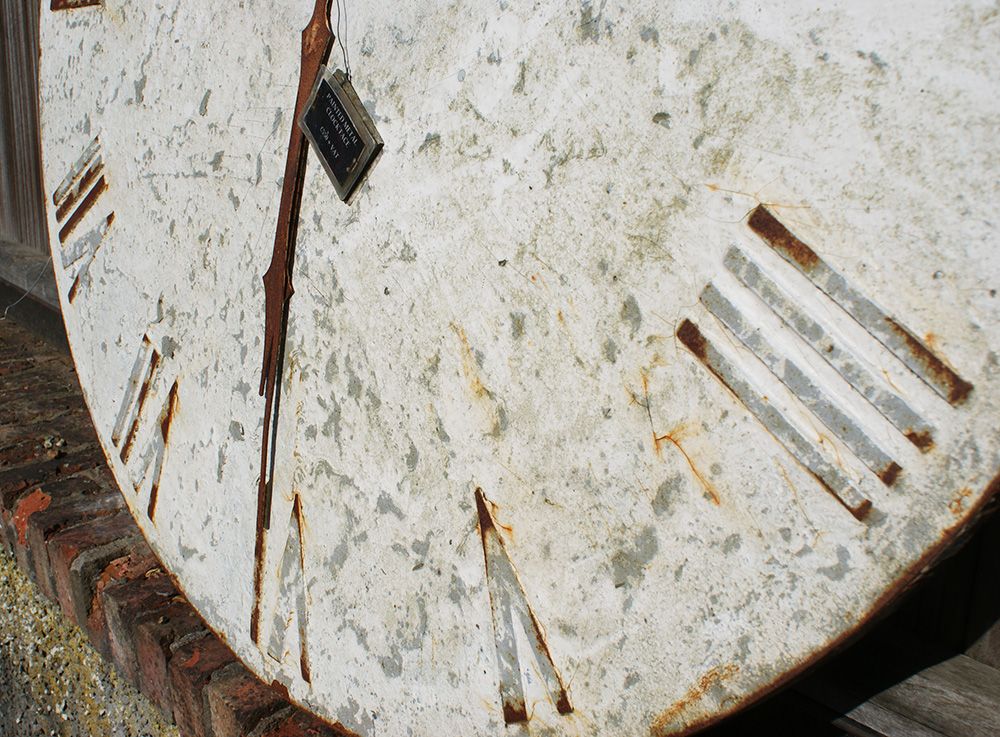 Round painted metal clock face