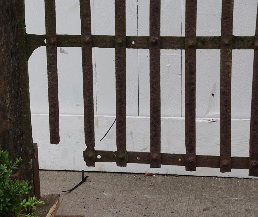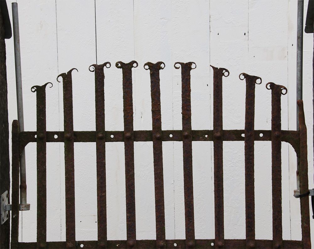 This gate is being sold as seen and will require some restoration work  to make usable again. Please study images for reference or visit our store to view gate.