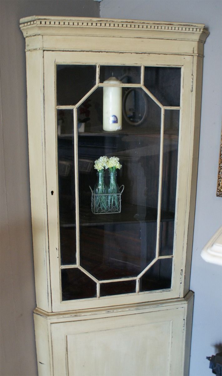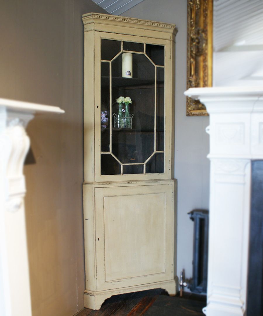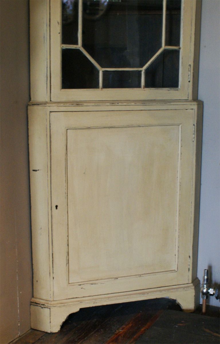 A Stunning tall Georgian corner cupboard hand painted with astral glass