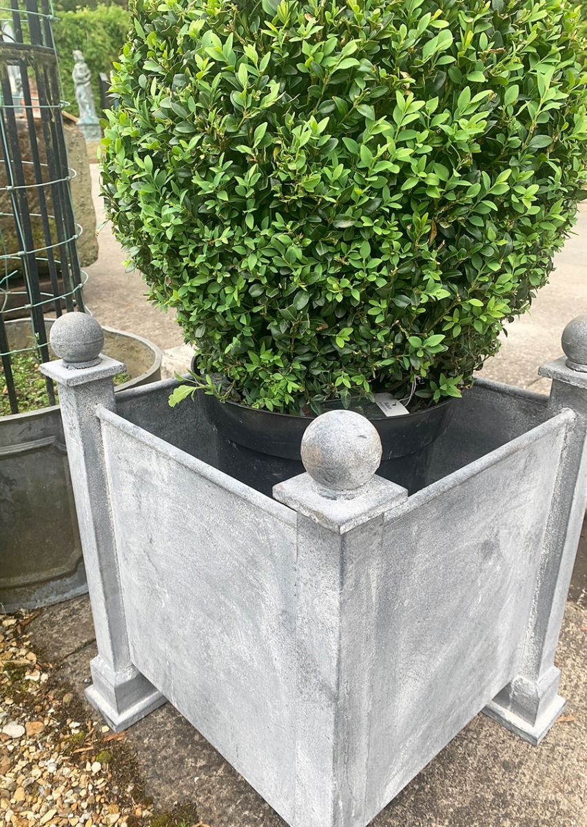The small Merrion heavy-duty square planter with ball finial made from plate steel. Very strong and perfect for small trees and large shrubs